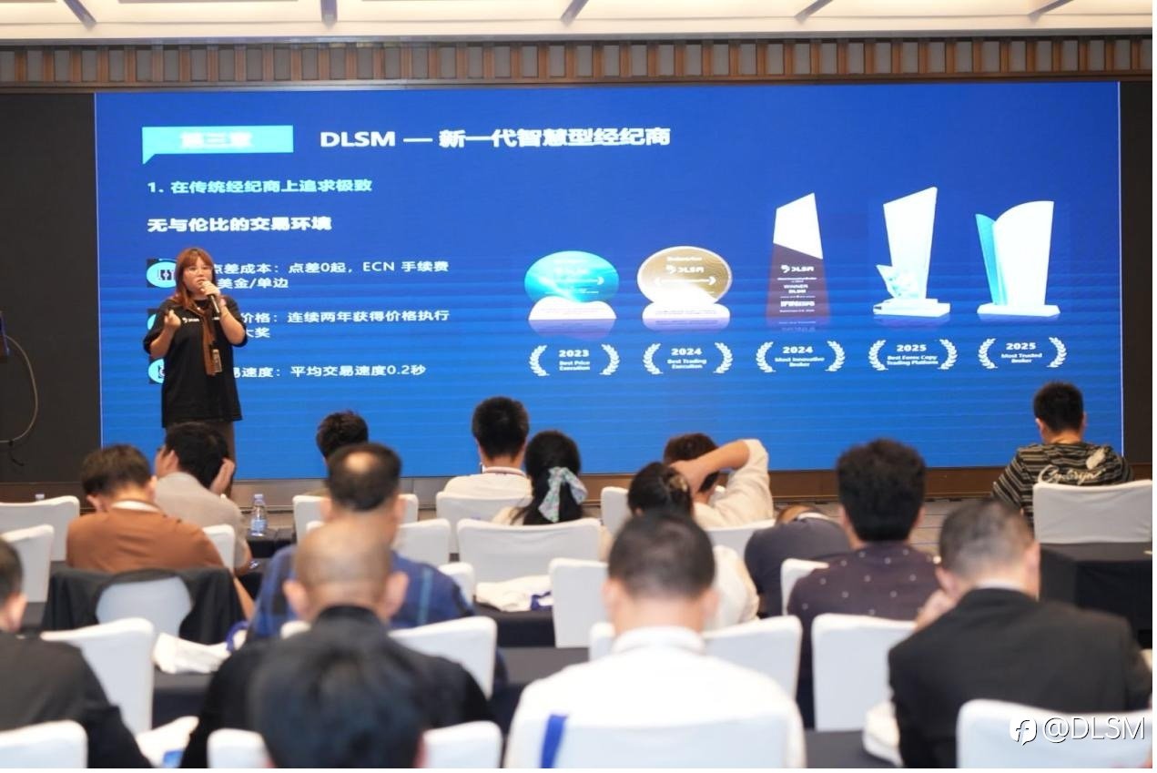 【2025年10月25日,东莞】 10月25日,东莞交易技术峰会圆满落幕。本届峰会聚焦金融科技与智慧交易的深度融合,吸引众多行业专家、资深投资者热情参与。在理性与热度交织的氛围中,与会嘉宾围绕交易趋势与金融科技创新展开深入探讨,共同勾勒行业发展蓝图。 作为本届峰会的独家赞助商及特邀嘉宾,DLSM全方位展示了智慧型经纪商在技术革新、平台构建与用户赋能方面的创新成果。凭借卓越的专业实力与前瞻布局,DLSM成为全场焦点,赢得广泛关注与高度认可。 峰会现场,DLSM讲师团队以品牌发展与使命为核心议题,深入剖析全球经济格局、数字化交易趋势及风险管理体系建设。从专业视角解读市场逻辑,分享策略构建与执行的关