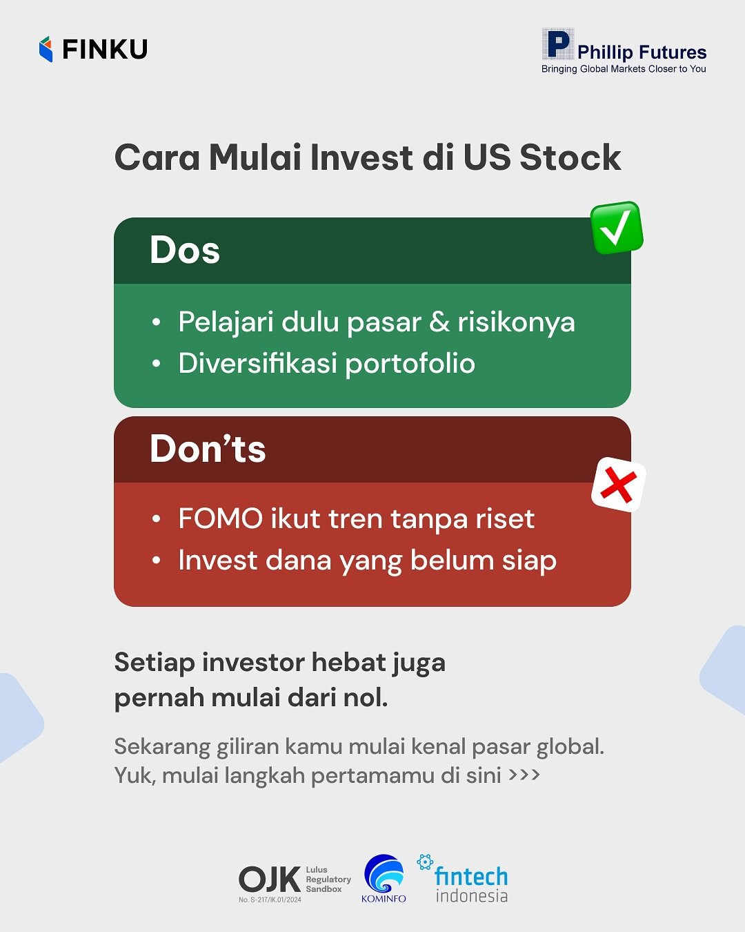 Didirikan pada tahun 2005 dengan nama sebelumnya PT Phillindo Futures Indonesia dan bergabung sebagai anggota kliring Bursa Berjangka Jakarta (BBJ). Kami menjadi PT Phillip Futures setelah Phillip Trading Pte Ltd (Singapore) menjadi pemegang saham mayoritas pada tahun 2010.