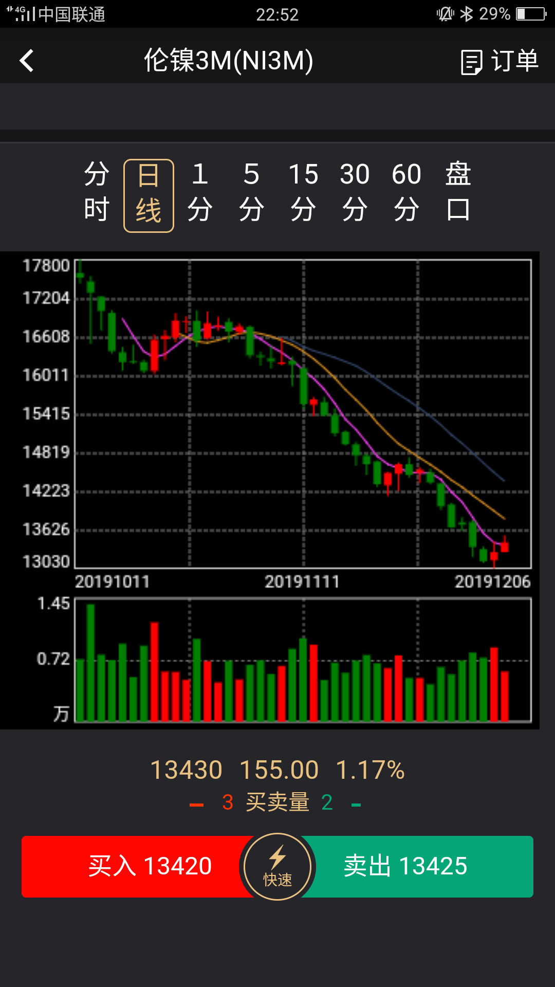 现在发布投资福利交易代码ni2003下单方向多单价格106140