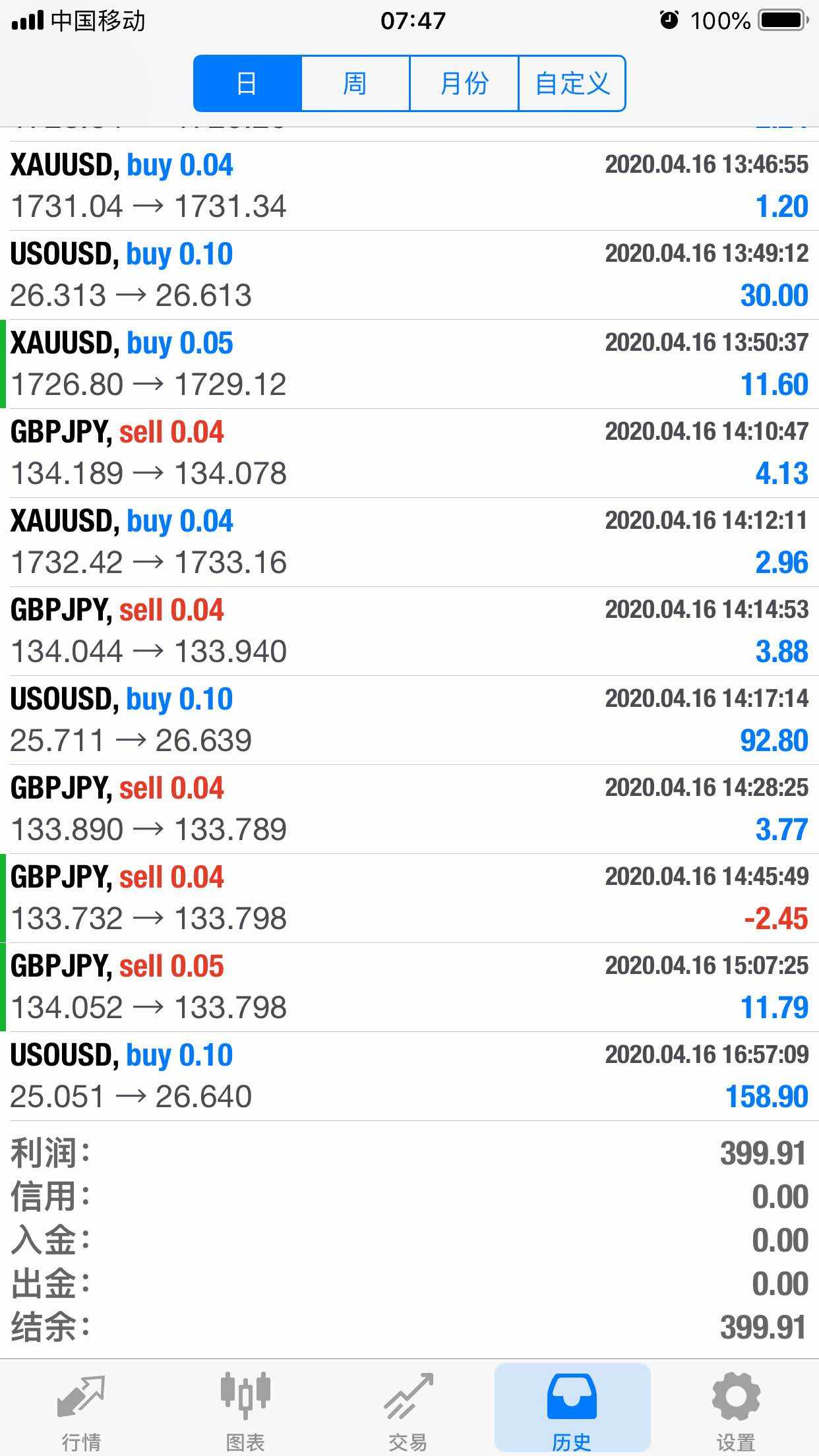 手动单也比较顺利,趁着黄金和原油的突破上涨小仓位收获了一些。