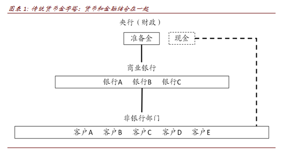 传统的货币金字塔,最高层是央行或财政部发行的货币,安全性最高;第二层是银行信用货币,企业和居民在商业银行存取款,或者在银行账户之间用信用卡、支票和借记卡转账;第三层,即便不是银行存款,某些非银行信用在正常情况下也可以起到流动性资产的作用,相对较安全,比如以未来现金流为抵押品所发行的资产支持证券。在数字经济时代,传统的货币架构会发生变化,在中间层次商业银行外出现了数字平台,比如支付宝、微信支付,Facebook酝酿推出的Libra等,这类数字货币依托社交平台或电商平台发展支付模式,在零售层面并不通过银行。