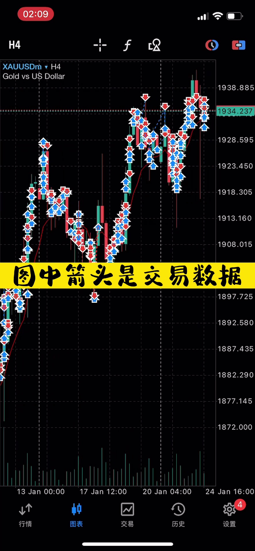 3,知道什么是顺势网格了,让我们进入正题:上周黄金一直震荡,多空博弈,并形成喇叭型震荡,我的顺势网格EA顶住了压力,在适当的人工风控下,突破严峻的多空封锁,其中行情跌宕起伏,请看下图。