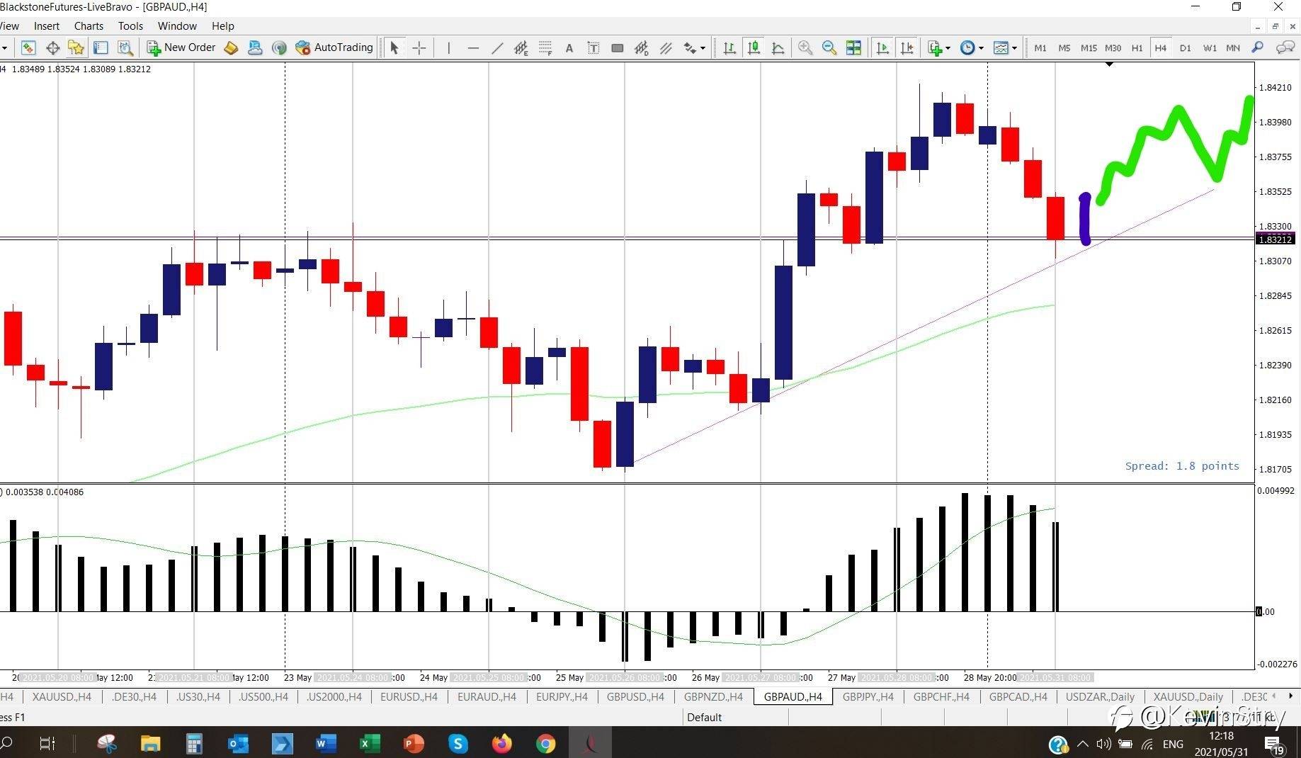 #OPINIONLEADER# On the GBPNZD we have two possibilities. I like the #GBP/NZD# as it has very nice moves or legs as I call it, larger than #GBP/USD# definitely than the #EUR/USD# It is still over an hour and 25 minutes before the 4H closes but we are looking for price to break the 1.9696 level (from my broker). The green arrow shows that we could have a break with the next candle. Alternatively (the option most likely), the blue arrow show that price might hang around in the triangle squeeze & then break out, could even happen as late as tomorrow morning when the European session open. Definitely a trade I would like to take and expect a PIP range of about 50 #Pip# Can always close some of the position or set a trailing stop. If you would like me to show you how to trade like me, drop me a DM. Thank you for reading.