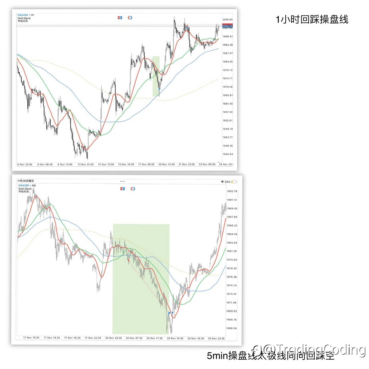 汇价站上一小时操盘线,5分钟相交向上!