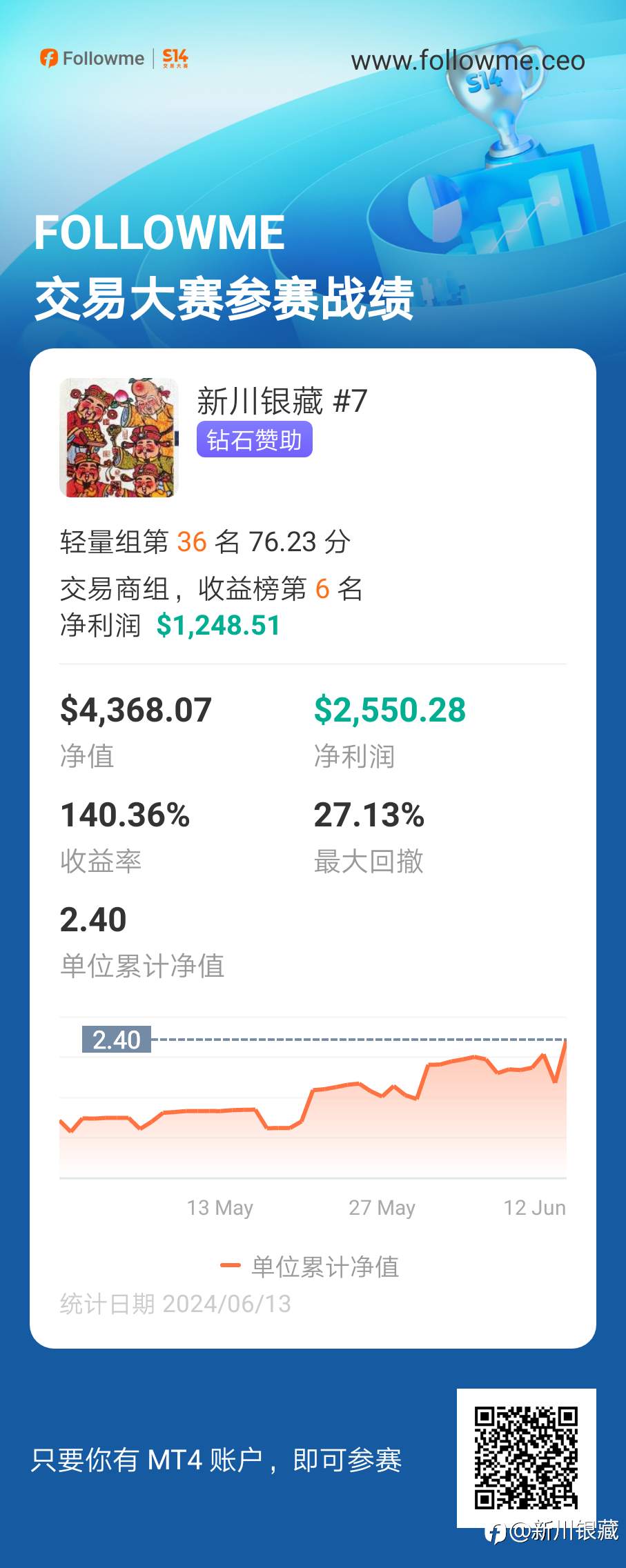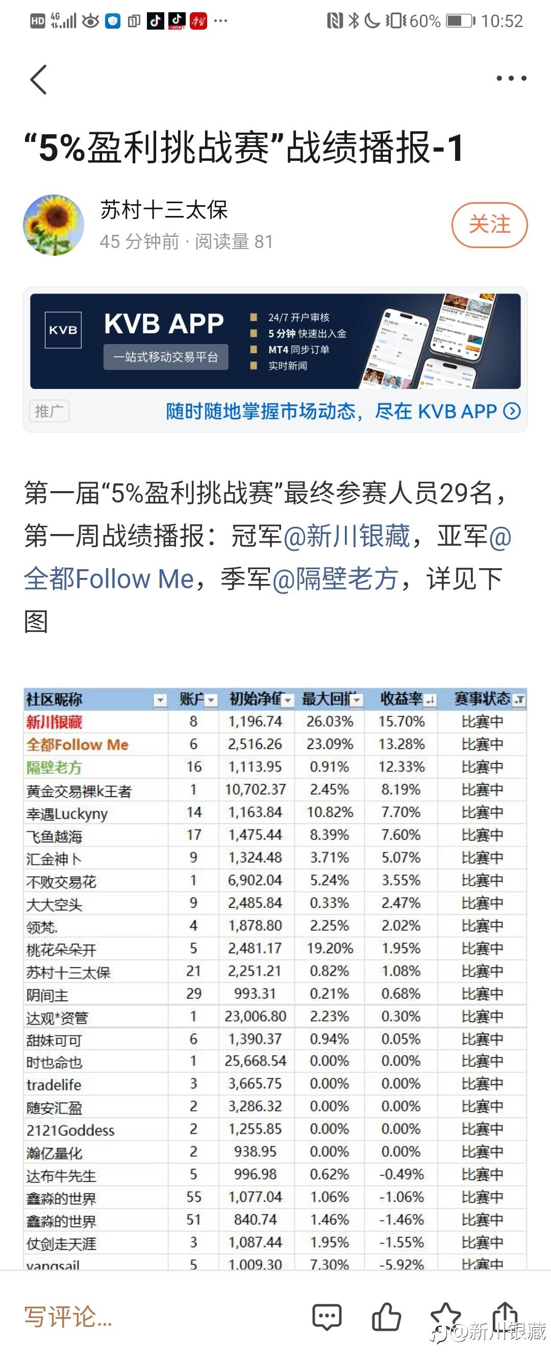 100天,從1000$做到3000$,妥妥的两倍利润! 甚至还登上了 @苏村十三太保 主持的社区排位赛的榜一。