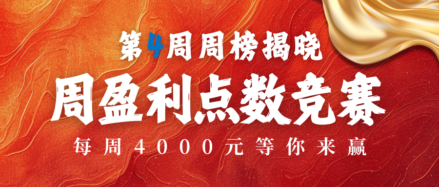 活动期间累计存款≥100美元的活动交易商新老用户可报名周盈利点数竞赛;盈利点数周榜将根据报名账户当周的交易盈亏点数由高到低进行排名。