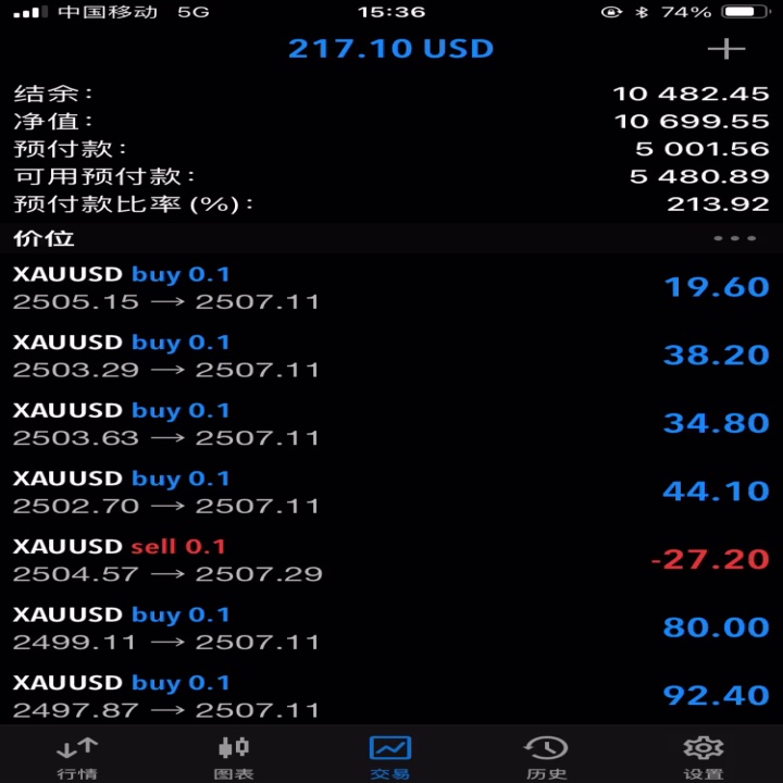 了解FTMO挑战的朋友应该知道,3天通过第一阶段的人要么运气好一波趋势通过,要么就是个交易高手,讲真的我两者都不是(可能有点运气吧,不然需要多几天的时间也说不定),我的操作方法也很简单,信号#2就是我判断进出场的信号,你可以用一个200刀左右的资金账号订阅跟随,我的建议是必须要认真观察一天了解信号#2的进出场逻辑,信号90%都是短线趋势一单一结,这些都是须要忽略的交易,将重点关注加仓两单或以上的部分,我的操作方法就是信号持有两单以上且浮亏超过10刀左右就是我FTMO账号进场的时机,此时信号加仓也要跟进,信号平仓也要跟着清仓(这种情况每天正常会出现两三次,新手建议用模拟盘试操作一两天或者轻仓操作),每个人的交易风格不尽相同,越是了解信号#2的交易逻辑,操作起来越是得心应手;风控也是至关重要的,FTMO的交易规则请网上科普,着重记住日回撤不能超过5%,例如10K的账号5%也就是500刀,不要迷之自信止损点计算尽用这500刀日回撤,经验教训超过400也要随时一键清仓,两三天就能补回来的亏损应断则断。做好交易节奏及风控,你会发现原来成为一个日内交易高手也不过如此。