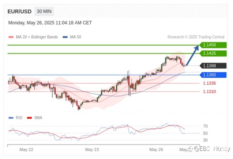 交易策略: 在 1.1135 之下,看跌,目标价位为 1.1110 ,然后为 1.1095 。