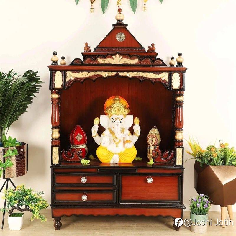 Proper care and maintenance are essential for preserving the beauty and longevity of your wooden mandir for home. The Brahma Sthana Medium Floor Rested Pooja Mandir requires regular cleaning to keep it looking its best. Use a soft, dry cloth to wipe away dust and dirt, and occasionally apply a wood polish or oil to maintain its natural sheen.