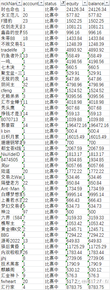 淘汰名单:原因:1、回撤>30%,2、订阅他人信号,3、入金>25美金