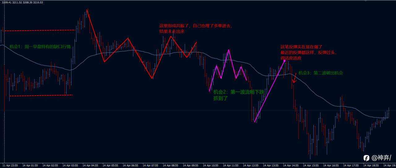 其一因为周末的停盘发酵,周一亚盘别犯懒早点起床,操作价值很高;其二虽然趋势很墨迹但点数还是挺大,又是50美金行情,机会挺多;其三最近特性就是反弹段特别暴力,一点不回头。不要被跳动的K线蒙蔽了方向。