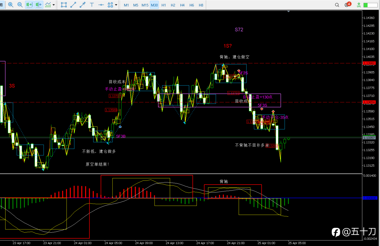 随后我只能在下方建仓做空,第一次建仓手动止损-35点,第二次建仓,回收成本,顺利的话持有直至30分买点出现再说了。