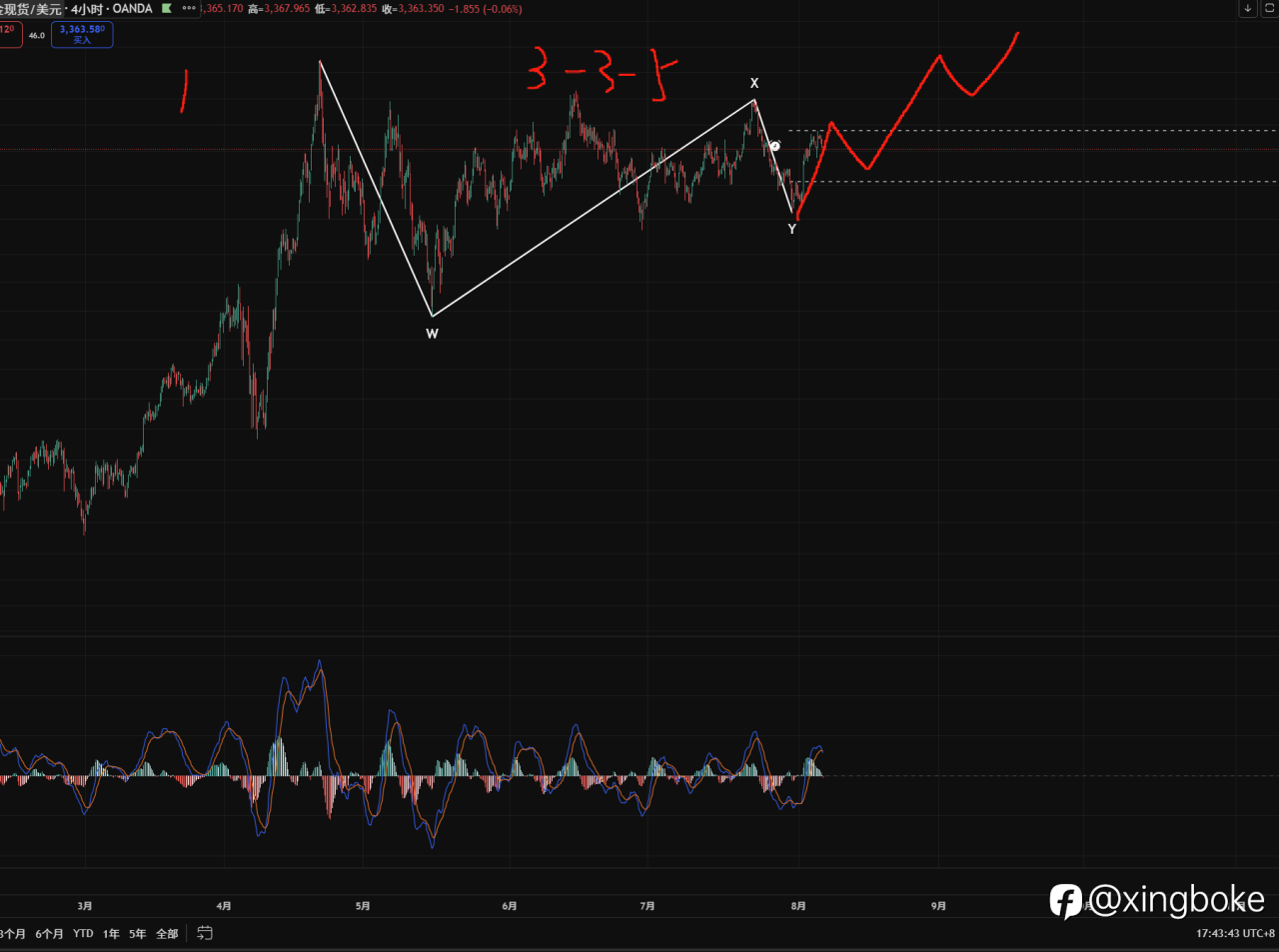 黄金目前还是属于多头趋势之上,这个位置如果是5-3-2那么后面必然是主升中的主升,那么速度肯定要起来的,同时我们要记得还有一个反弹的可能;