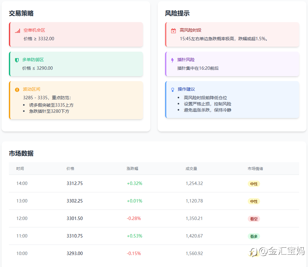 🔸 22:00–23:30:极有可能走出单边急涨,冲击3340上方