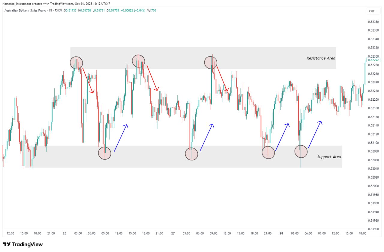 Trader disarankan untuk menunggu konfirmasi breakout yang valid dan memanfaatkan momentum dari pergerakan arah berikutnya dengan tetap menggunakan risk management disiplin.