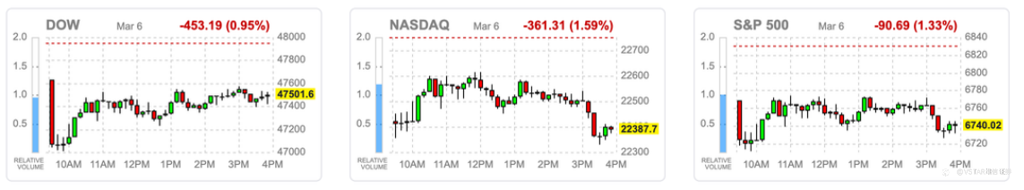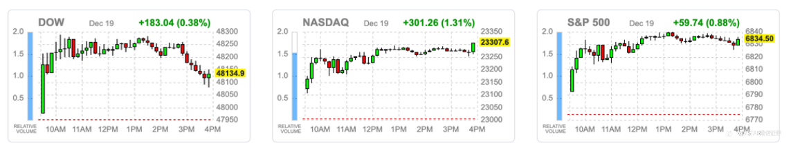 盘中虽有低接买盘支撑,但随着降息预期下降、AI资本开支扩大引发获利疑虑,市场情绪整体转为谨慎。标普500指数收于全日低点,结束连三日涨势。