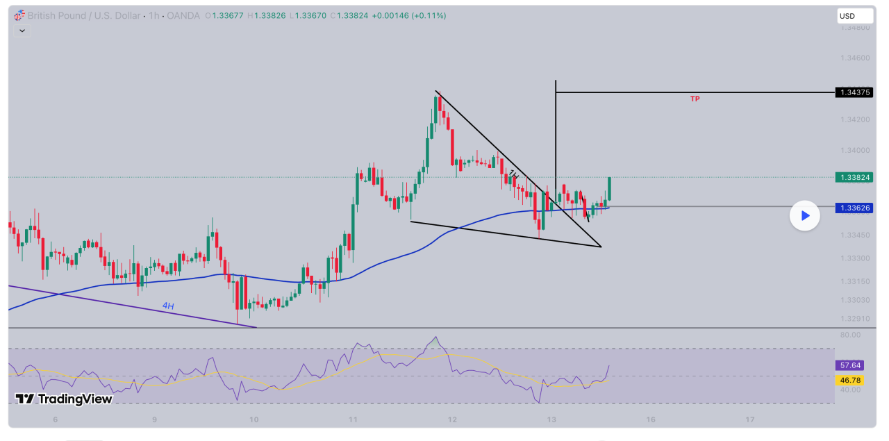 Nếu giá phá rõ ràng trên 1.3370 và retest lại: