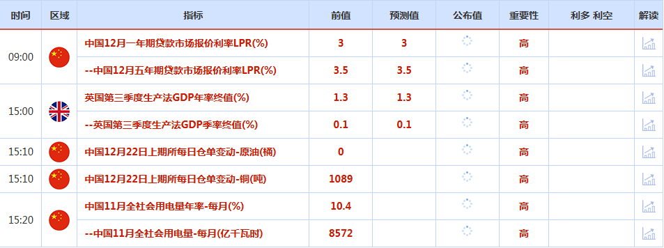 前日公布数据与消息: