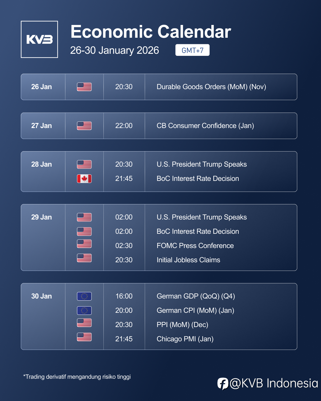 Secara keseluruhan, pasar keuangan global pada 14 Januari 2026 berada dalam fase yang mendukung aset lindung nilai dan instrumen berisiko terukur. Emas, minyak, indeks Hang Seng, dan USDJPY menunjukkan peluang menarik seiring kombinasi sentimen geopolitik, kebijakan moneter longgar, dan dinamika pasar global. Trader disarankan untuk tetap disiplin mengikuti level entry, stop loss, dan take profit yang telah ditetapkan agar peluang keuntungan dapat dimaksimalkan dengan risiko yang tetap terkontrol.