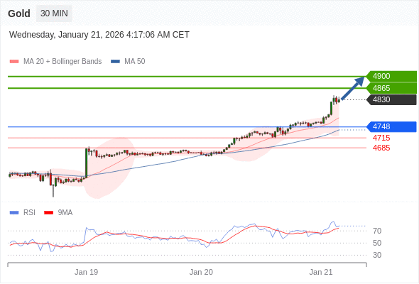 在 4620 之上,看涨,目标价位为 4710 ,然后为 4750 。