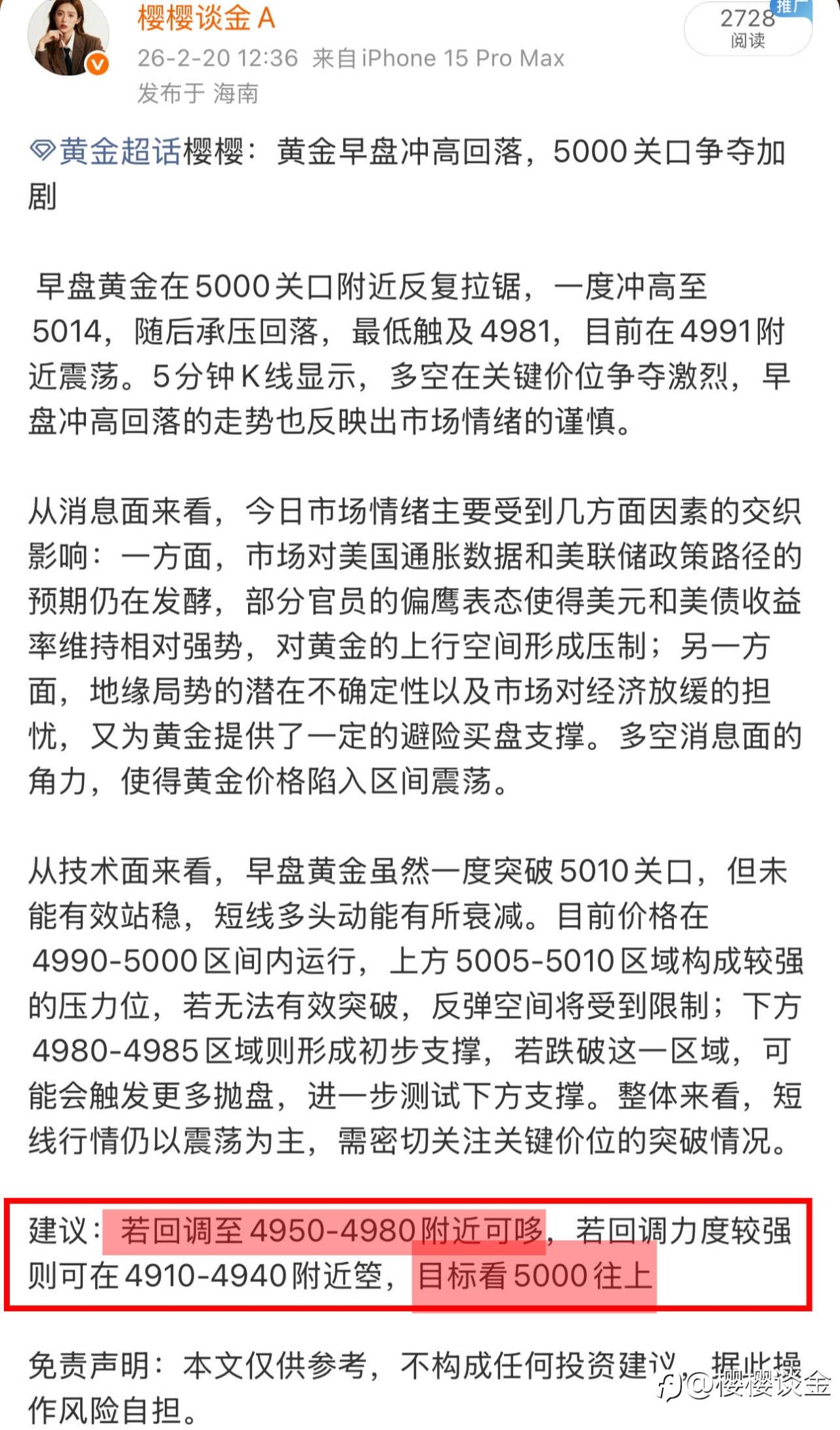下跌驱动:美国PCE通胀数据超预期强劲,叠加多位美联储官员持续释放“降息不宜过早”的鹰派信号,市场对3月降息的预期大幅降温,引发前期多头集中离场,推动金价深度下探。