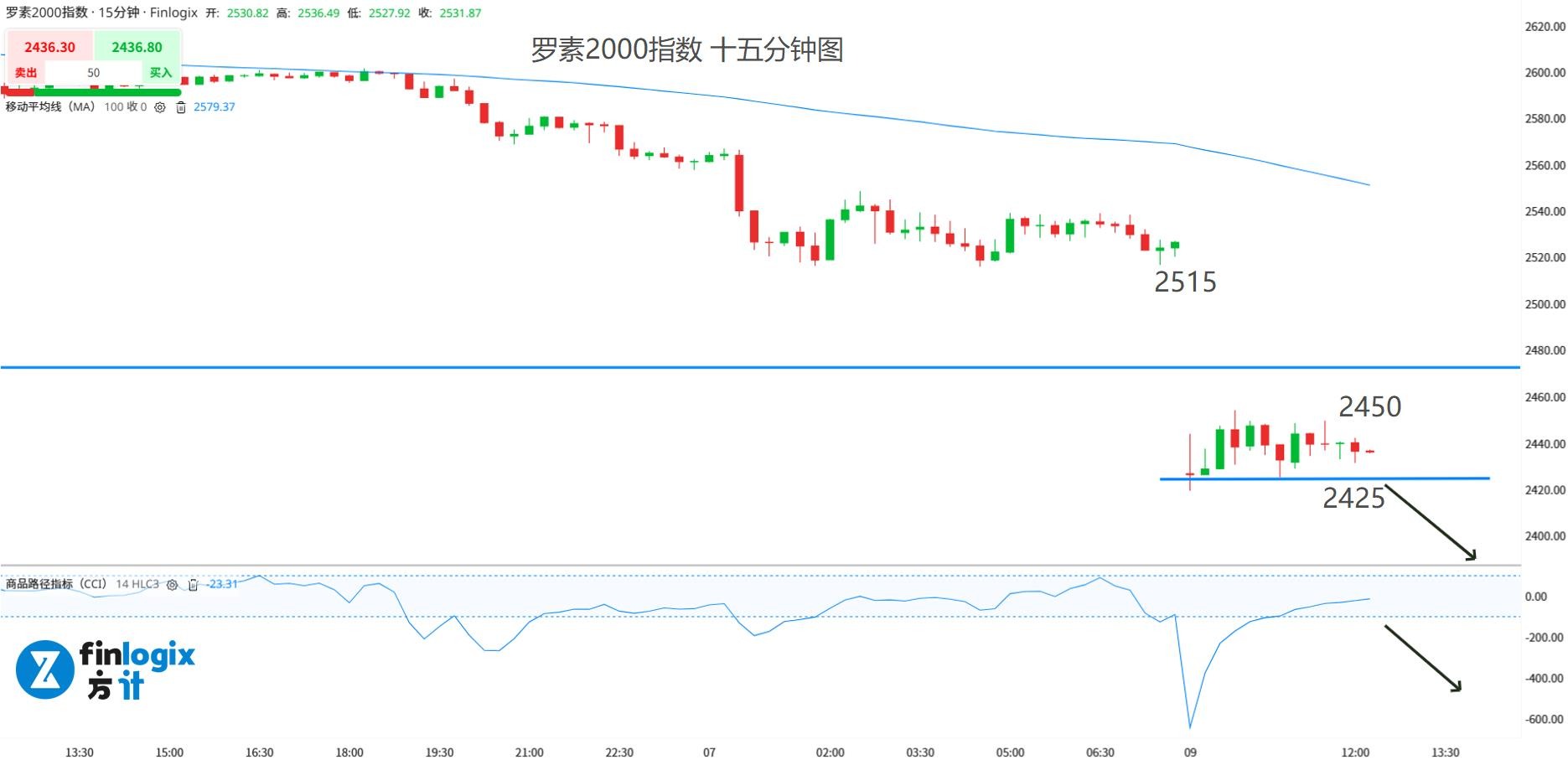 日内与短线交易策略:(趋势跟随)突破2425跟随偏空
