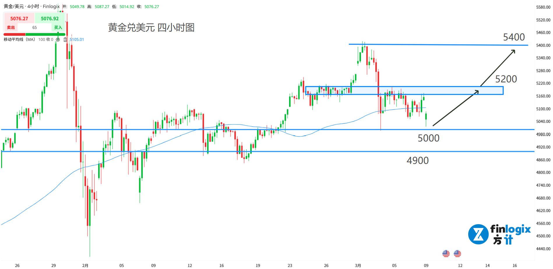 阻力参考: 5200(止盈&突破);5400