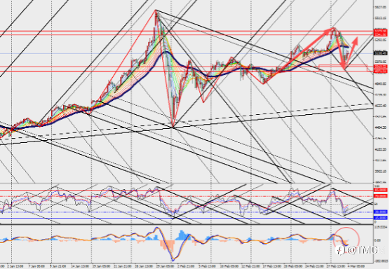 黄金H4级别震荡徘徊,MACD双线和量能柱在零轴下方收敛。油价上涨引发的通胀顾虑超过了纯避险需求,导致黄金短期承压。投资者需区分地缘风险的短期溢价与宏观基本面的持久影响,前者可能提供间歇性支撑,后者则构成系统性阻力。