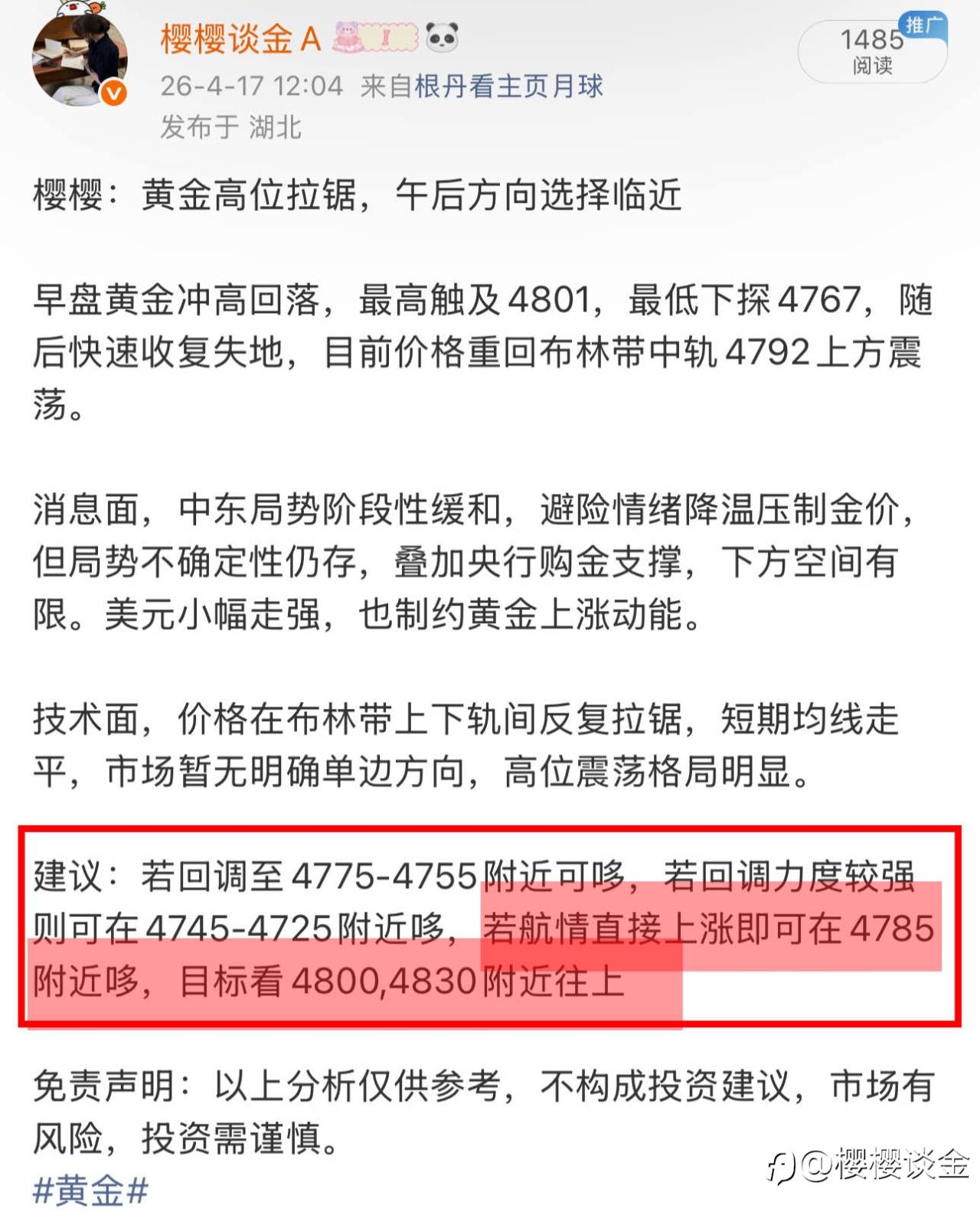 樱姐黄金交易思路日总结