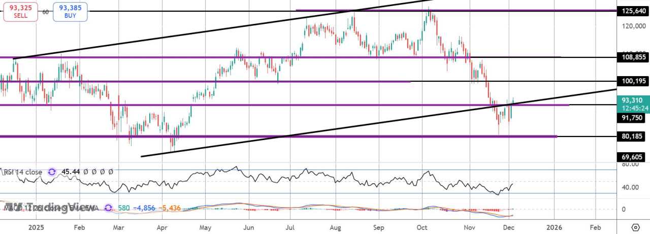 目前,市场仍徘徊在牛市通道低点和91,750美元附近。如果多头能够突破该区域,下一个需要关注的阻力位将是10万美元,突破该阻力位后,比特币有望反弹至108,855美元。下行方面,如果价格进一步下跌,80,185美元是需要关注的关键支撑位。