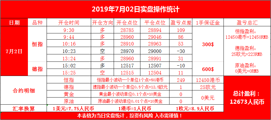 共操作4手恒指,1手原油,