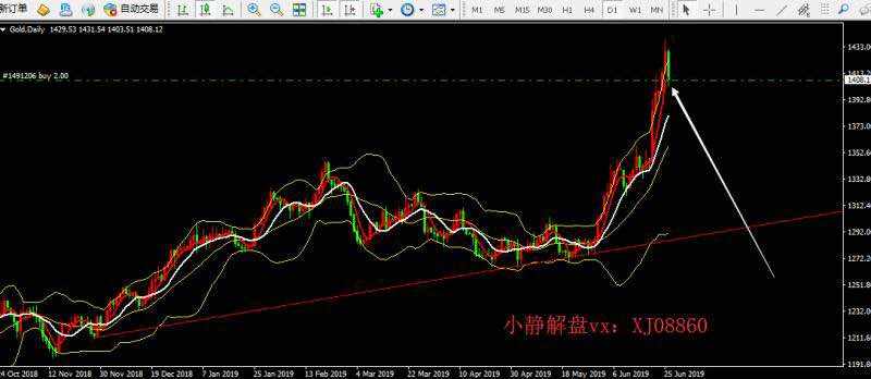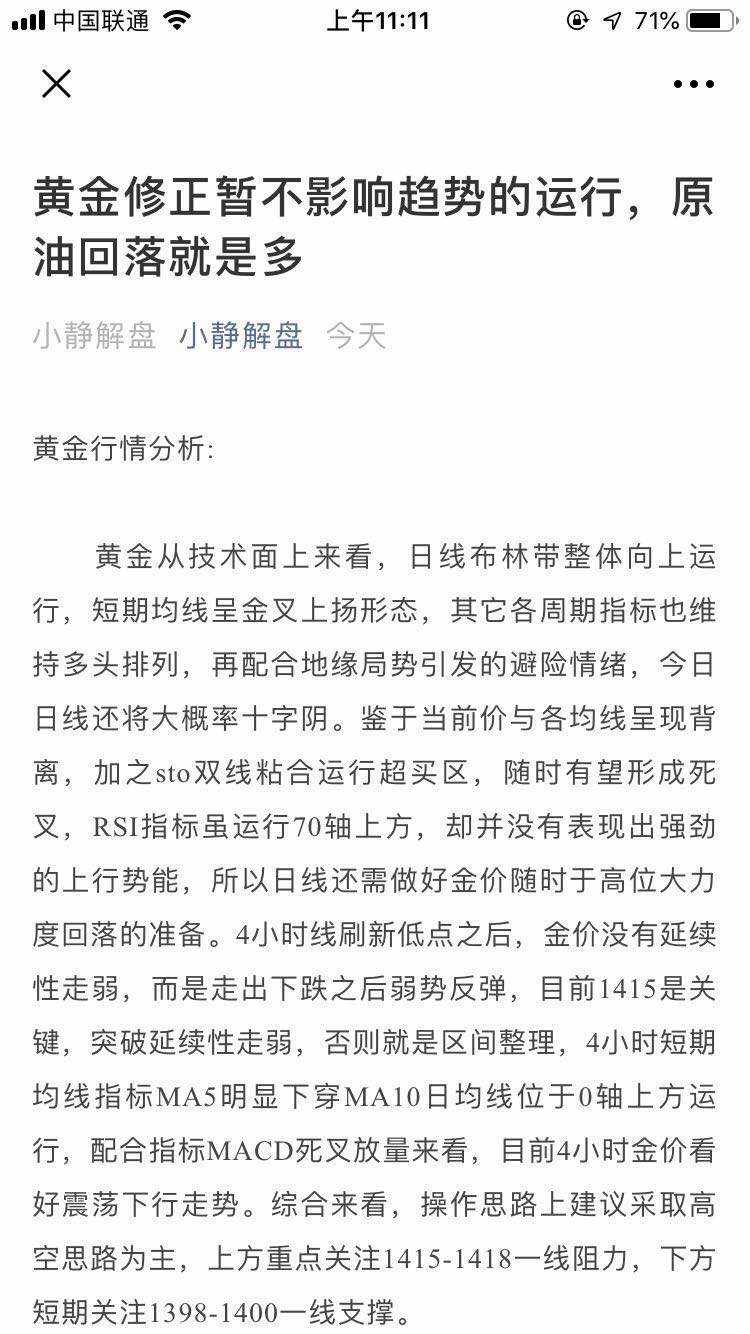 黄金日内操作策略:策略一,黄金1417附近可进行多,止损设置1412附近,目标看1425至1429破位可持有,今天周五黄金波幅比较大,所以实时策略会根据行情实盘调整
