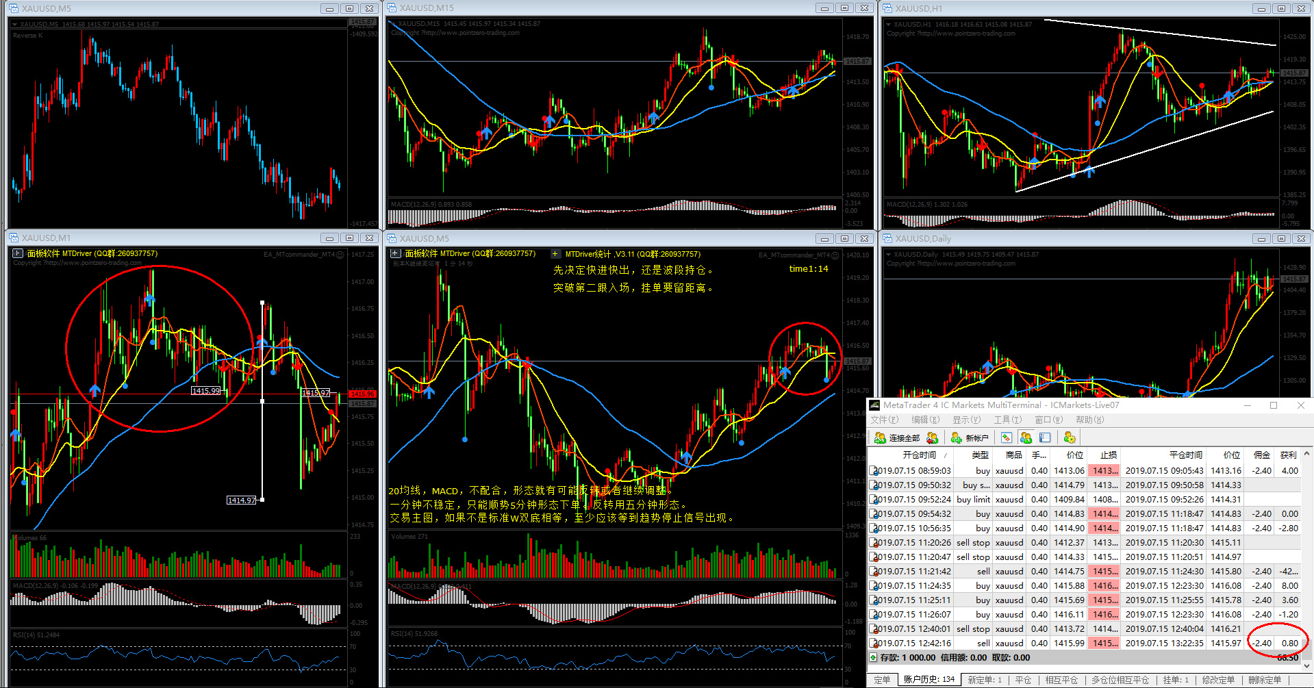 2019年7月9日 第24单,双顶形态,黄金亏损40.2。