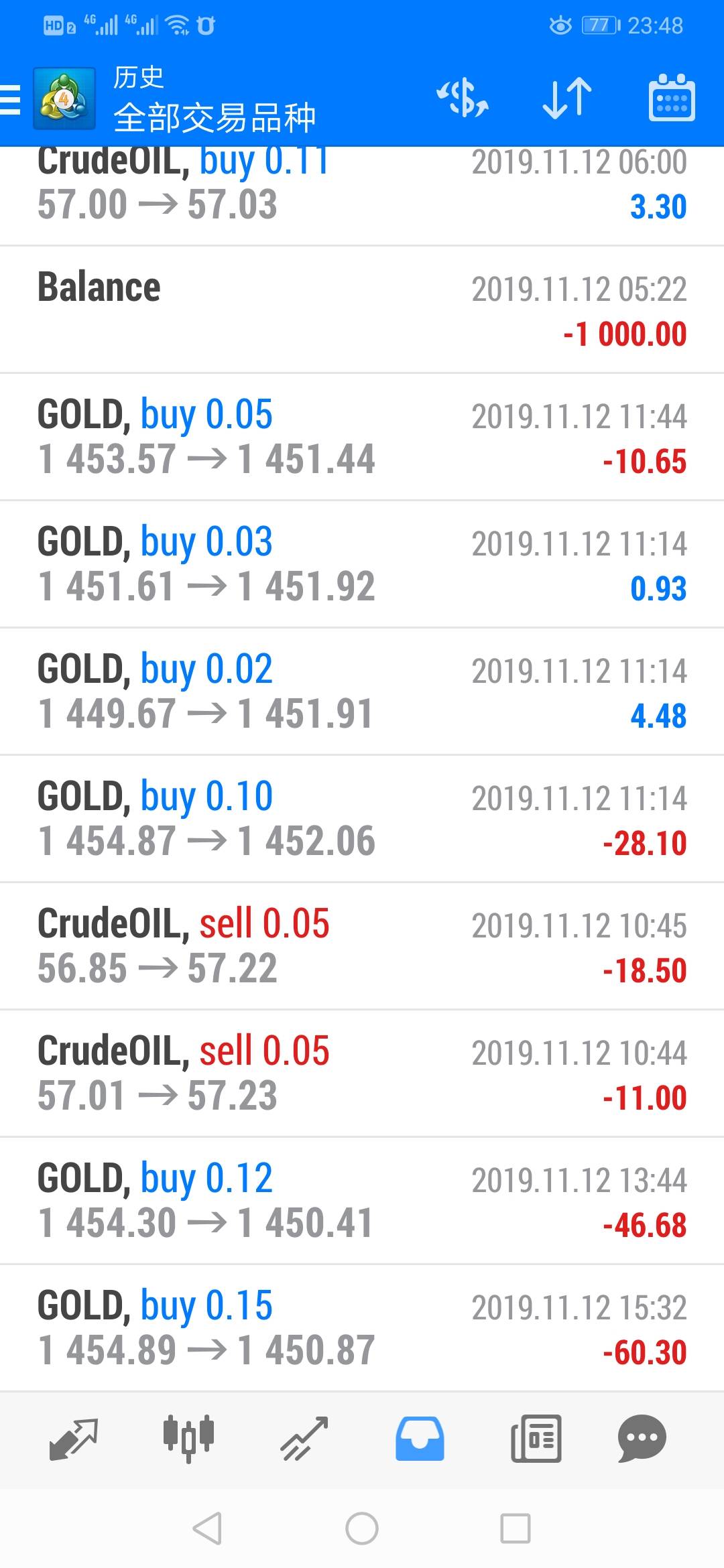 而原油顺势下跌,震荡缓慢上升,一出就是大的下跌,把所有做多套牢。不带止损的,不忍心割肉的就只能看的自己账户被完全爆掉。期盼着能涨一涨,历史是多么的相似。还在扛单的兄弟们可以回顾2018年12月份的原油走势。【本人在这波行情中爆仓,花钱买了教训】——切记不抗单,不逆势,【涨不言顶,跌不言低,是有道理的】