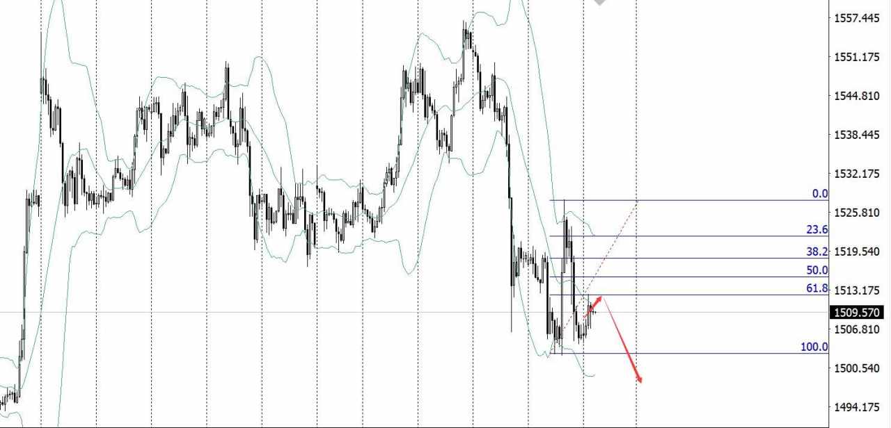 日线先考虑第一个点,布林下轨支撑位1490附近,四小时在上周五下跌后尾盘已经回撤过382了,所以这个位置不能再去空了,在去就不是空了,