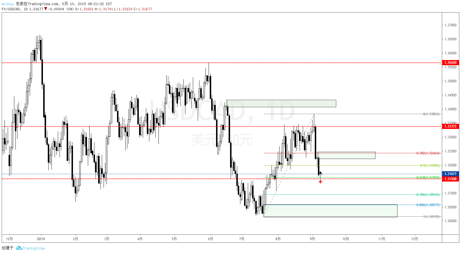 $USD/CAD$ 美加上周五收出看跌Pinbar,连续4个交易日没过前期大跌的供给区,我们有理由博弈空单。做空止损位在1.33500,走起!相对应的美国原油得到支撑!原油继续看涨,$WTI$