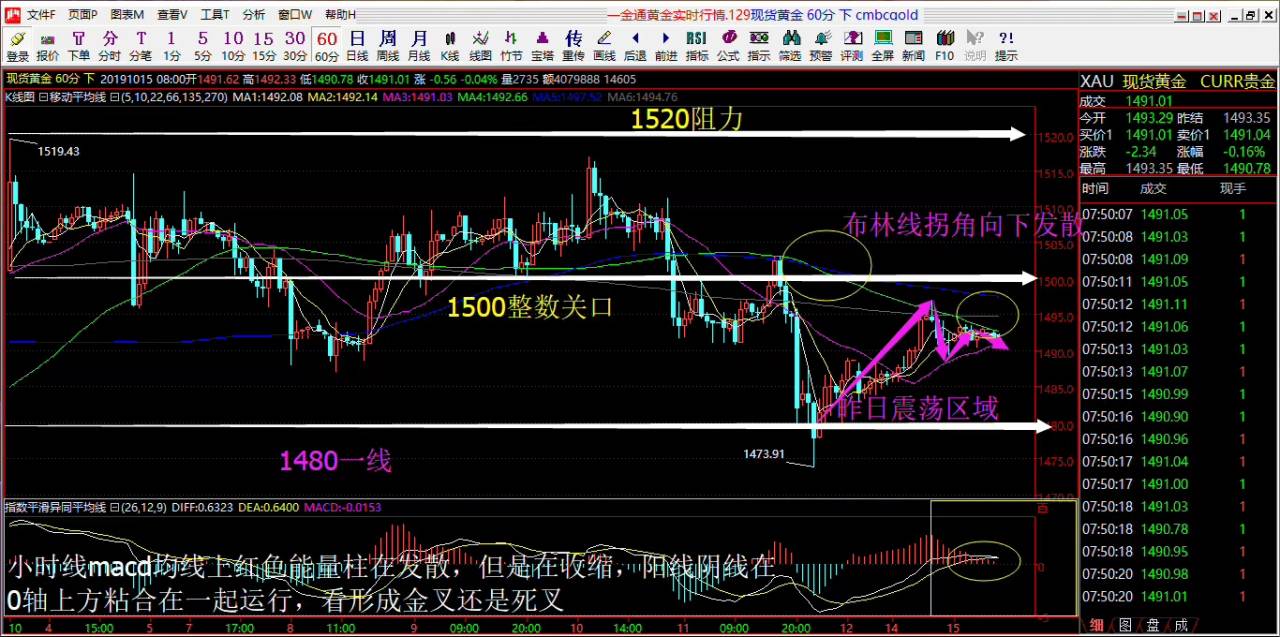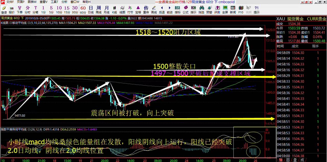 很有可能黄金像前段时间一样,在1490-1510区域震荡,明天非农打破区域;前段时间几次在1490-1510区域震荡,几次向上突破,刷新高点;向下突破1490几次在1480只跌反弹,只有前几天破位1480了;目前再次回到这个区域,大家要注意这个区域的突破;