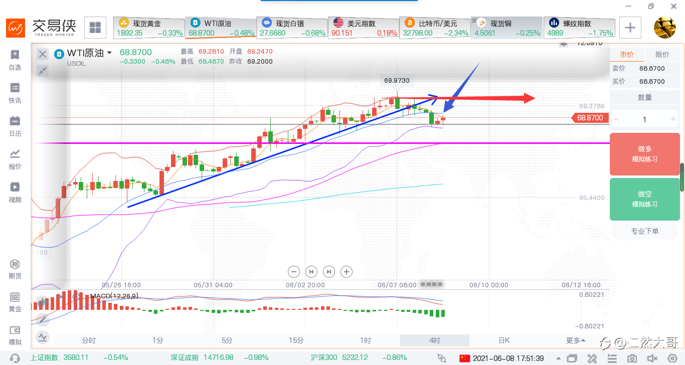 黄金突破三角形整理区间,回踩不破,后期继续挑战前期1556的概率较大。目前上冲的动力有些不足,操作策略,低多为主。日内主要关注1500一线,下破继续关注1495附近,在这两个点位附近做多……个人建议仅供参考!!!!!!