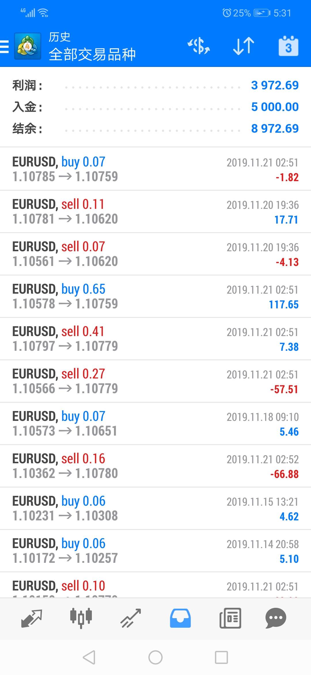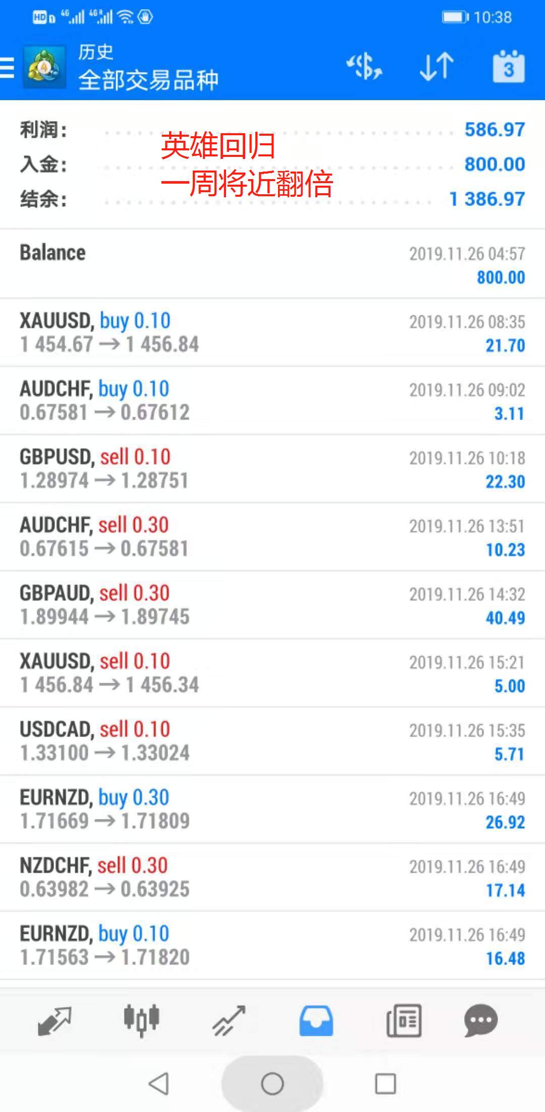 十月初到现在将近两个月时间本金1000美金做到34268美金收益达到246%,月盈利翻倍,最大回撤15%。今天早上将上周遗留的单子都清掉也盈利209美金重新布局