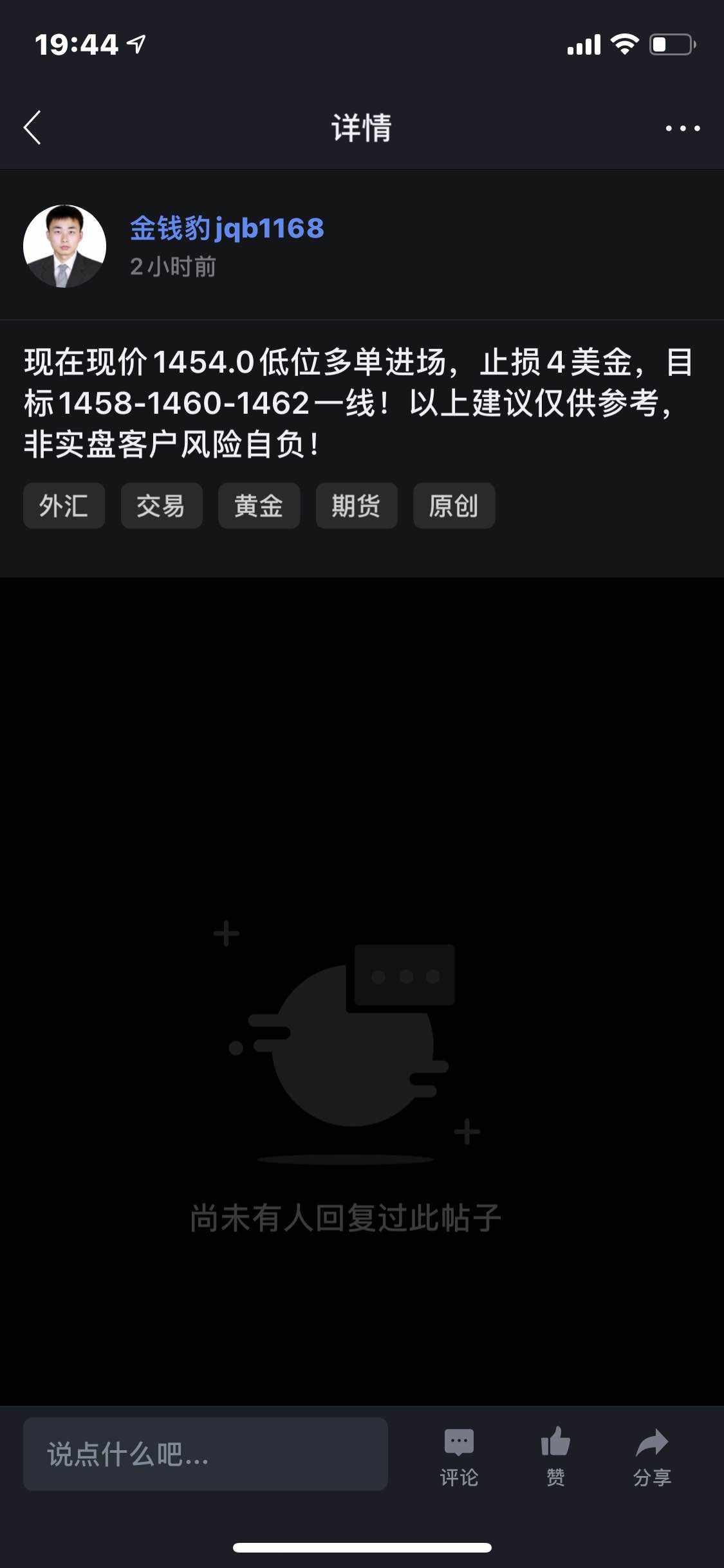 黄金现价1456.9空单进场,止损4美金,目标1452-1450#XAG/USD# #XAU/USD#