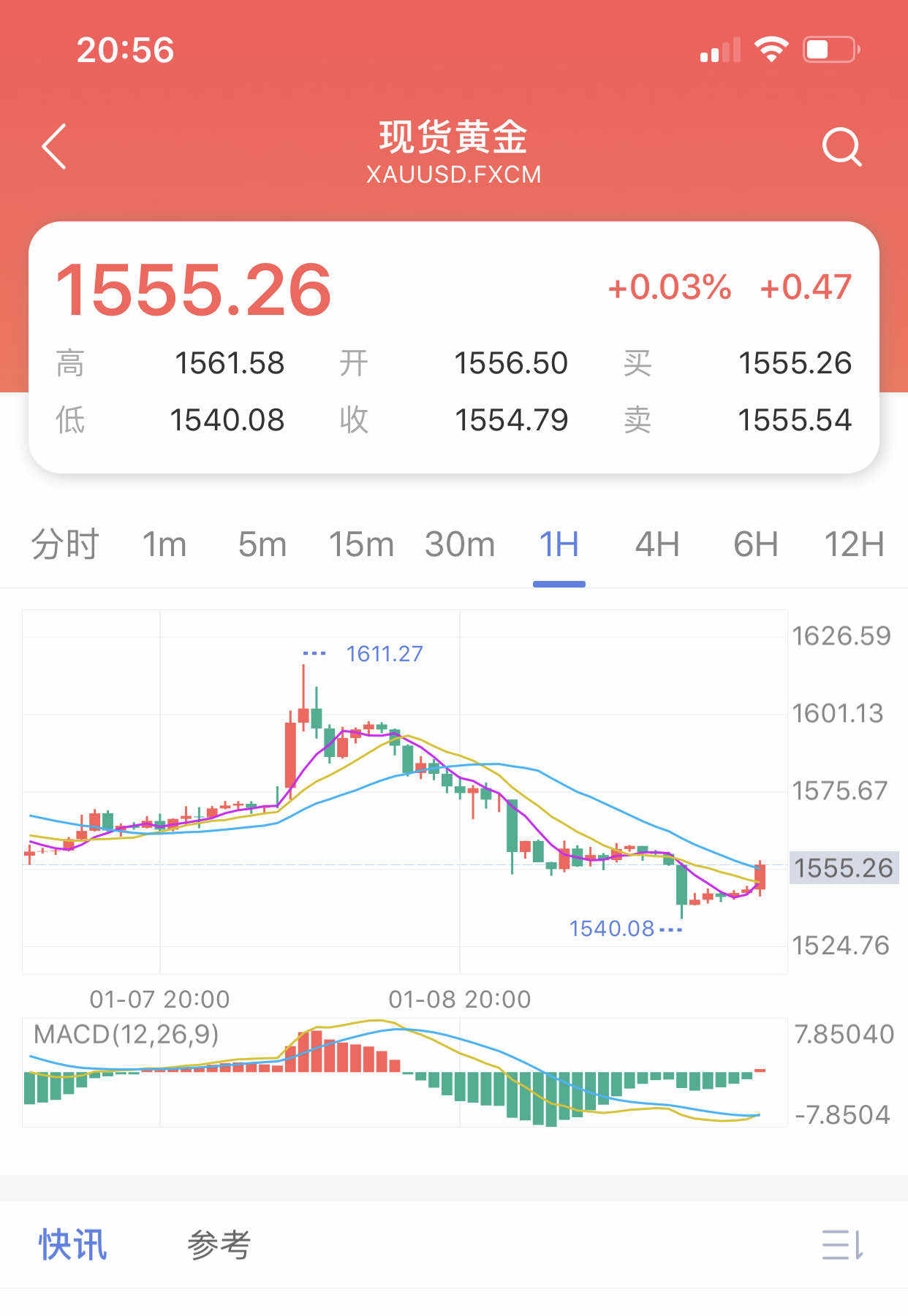 黄金现价1555空单进场,止损1563,目标1540破位1535