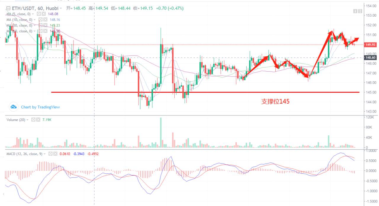 2.19日比特币行情分析:日线图上面的MA5和MA10均线在10000关口形成的支撑,这个位置曾是昨天晚间的短期阻力,现在由阻力转支撑,可以引起大家的注意,尤其为短期操作的朋友,如后期行情动能不足这个位置属于必触位,上方的10500为当前的阻力,能否冲破近期高峰就看这几天行情筑底的表现了。四小时级别图中,布林带开口,行情震荡上行转为向上的拉升,期间还突破了布林带的上轨到达了近期高点10250;后面虽说出现了回落,但是仍旧保持在五日均线上方波动,位于10139位置;说明多方仍旧保持着强势发力,使得币价能牢牢锁住在万元关口上方运行;附图中,MACD快慢线在零轴下方运行,呈现金叉状态;RSI和Stoch均保持着向下放量的姿态运行着;由此可见短期行情以回调震荡为主。操作建议以低多为主,建议在10100附近做多,止损9950,止盈位10450点附近#交易心得#