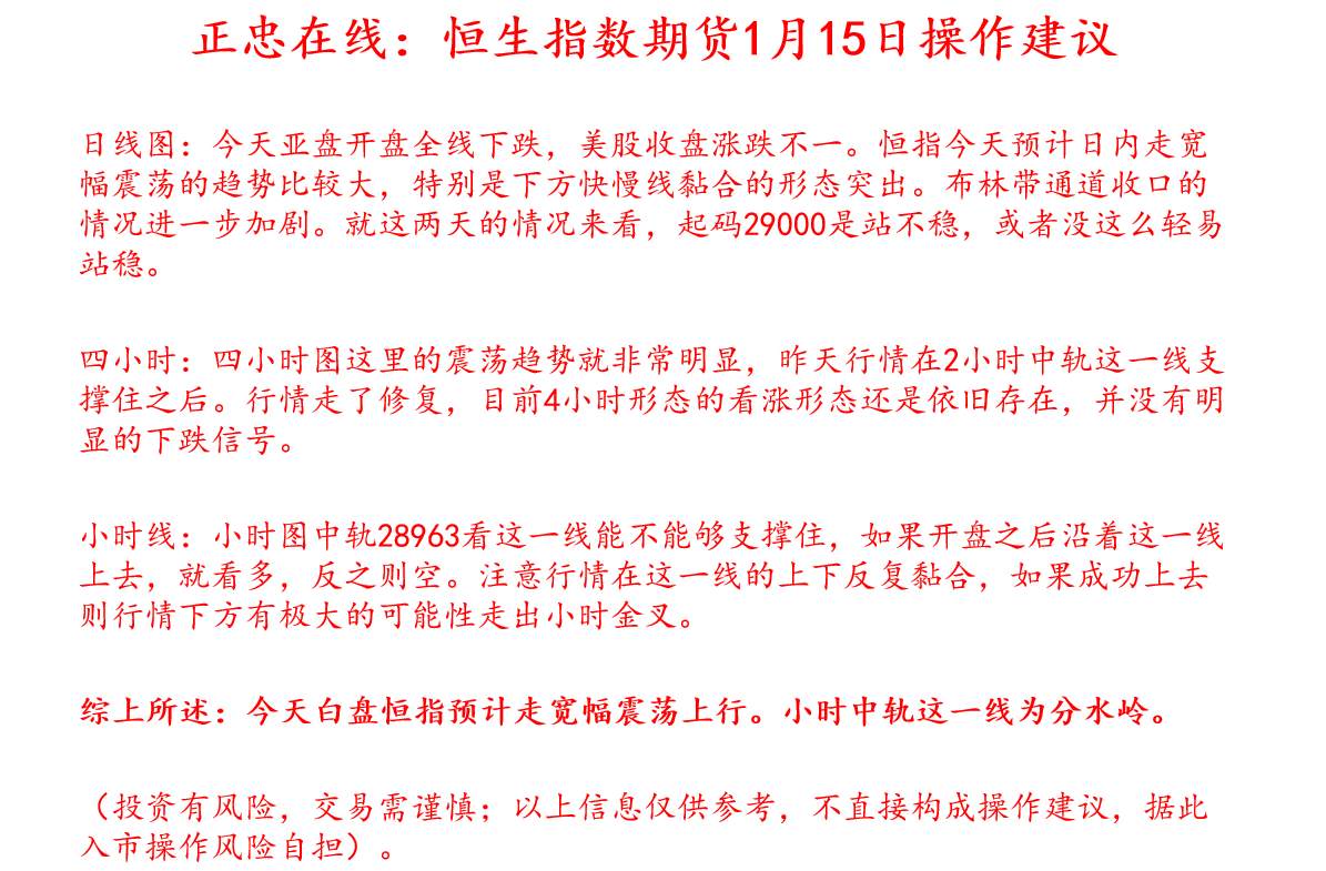 #WTI# 正忠在线:美原油期货1月17日操作建议日线图:前期因为消息面的刺激暴涨之后,行情随之回踩,本身本周三API数据也是利空,大方向其实都看空。但是由于周三的EIA数据利多,进而带动行情沿着58一线展开了支撑,并逐步向上试探。按照目前的走势,下周的行情有非常大的可能性去试探日线中轨60一线,目前日线中轨的走势趋于平行,短时间来看,报价不会有很大的变化。4小时:4小时图这里布林道通道在收窄,且不断震荡,但是要留意的是目前已经成功站稳中轨上方。目前的行情说到底就是在孕育一波新的行情,如果没有明显的利空因素的前提下,预计行情将会去试探4小时上轨。目前4小时上轨报价是在58.99这一线。1小时:小时图目前布林带通道已经打开。现在实际上走的就是震荡上行思路。可以很肯定的说,在1小时中轨这里已经形成了非常强烈的支撑,行情势必会沿着这一线走震荡上行。 综上所述,日内原油持有震荡上行的走势思路。可以依托1小时中轨这里布局多单。(投资有风险,交易需谨慎;以上信息仅供参考,不直接构成操作建议,据此入市操作风险自担)。