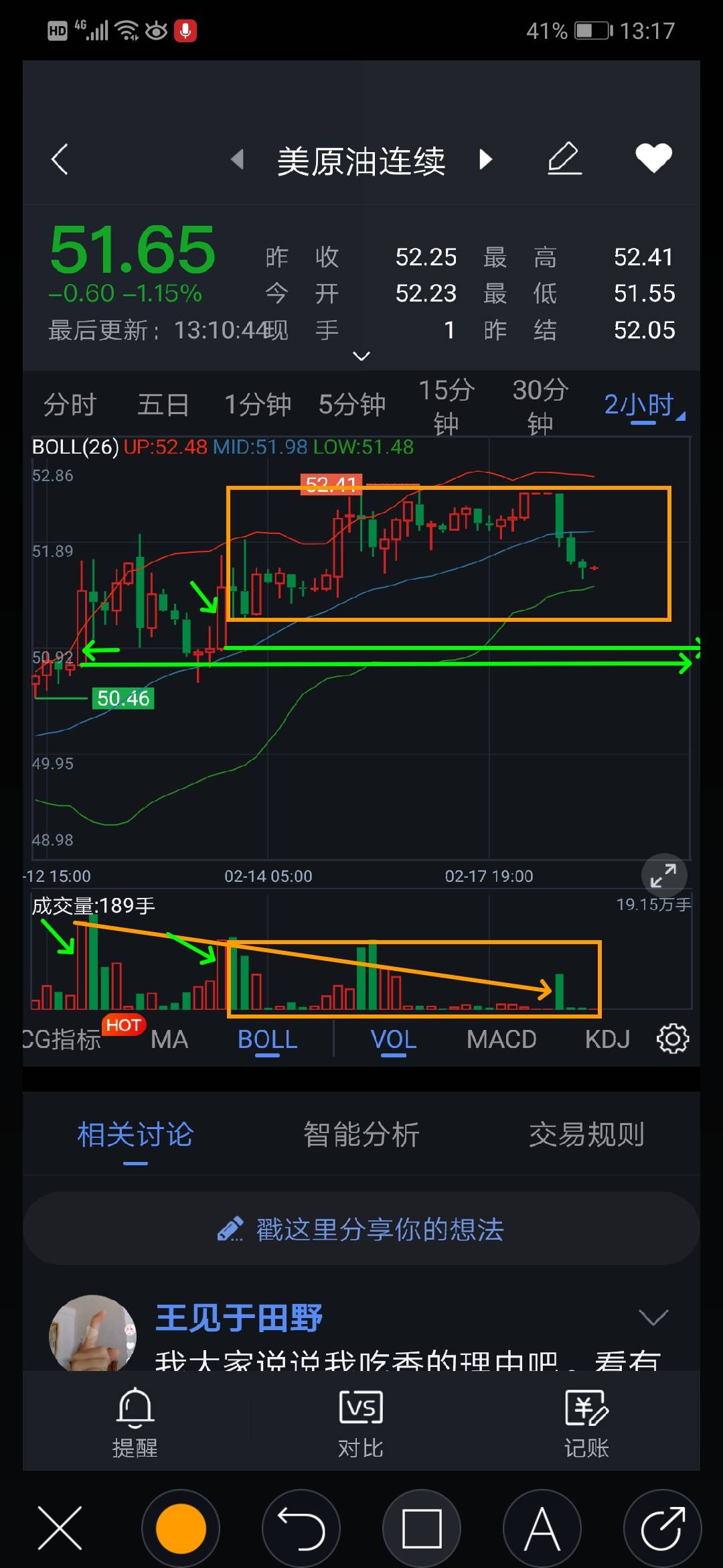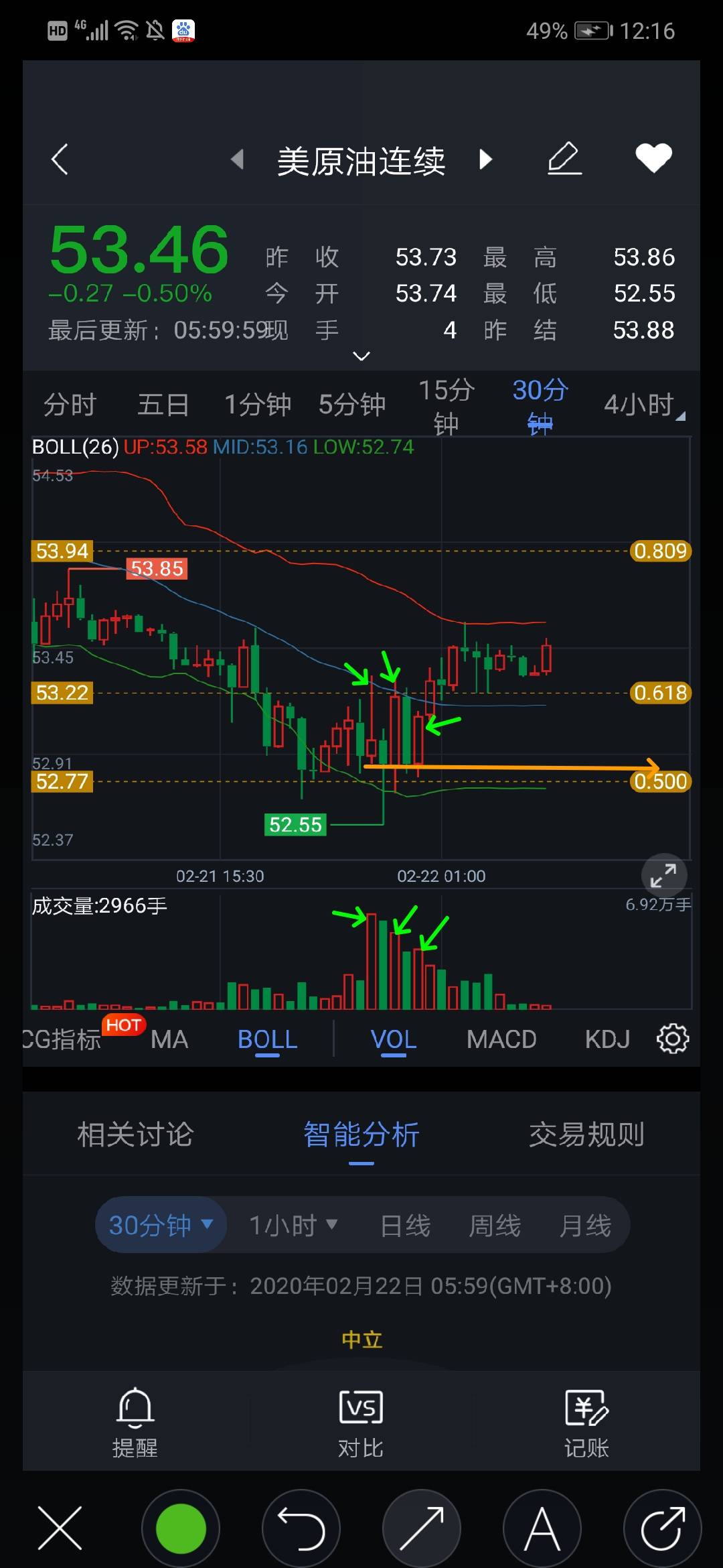 #WTI# 支撑位53-53.2,周一低多,顺着支撑位进,目标56-56.5,不是一气呵成,中间会有很多波折,祝福大家各自安好!量价分析与解读,有兴趣的朋友可以留言探讨,共同成长。