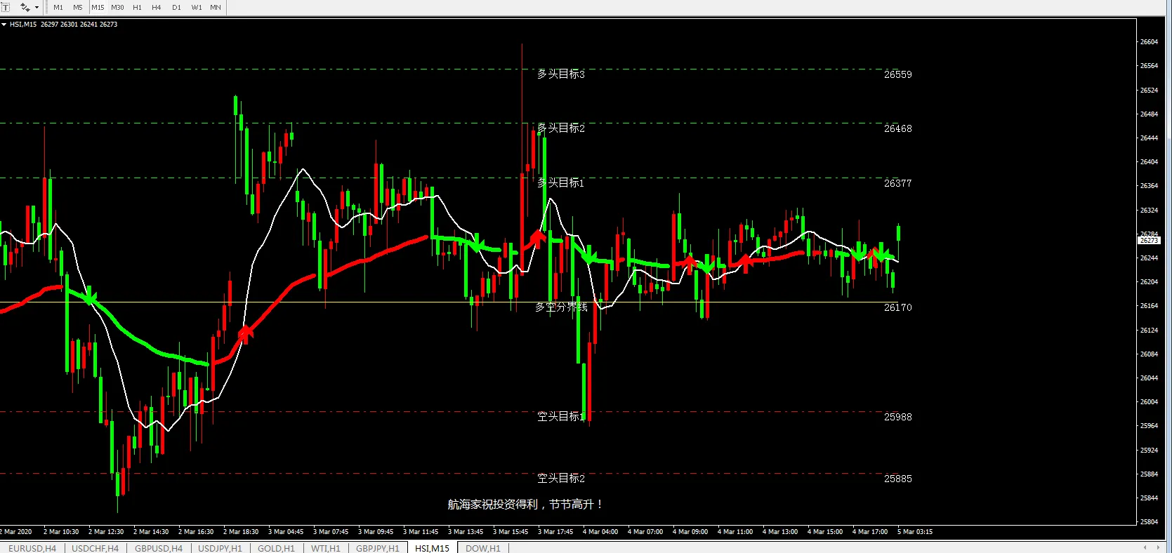 【03.05HSI恒指策略】0301#早盘主多,参考26220—26250进场做多,止损26120,目标价格看26460—26600,最大目标看27000上方。现报26260附近