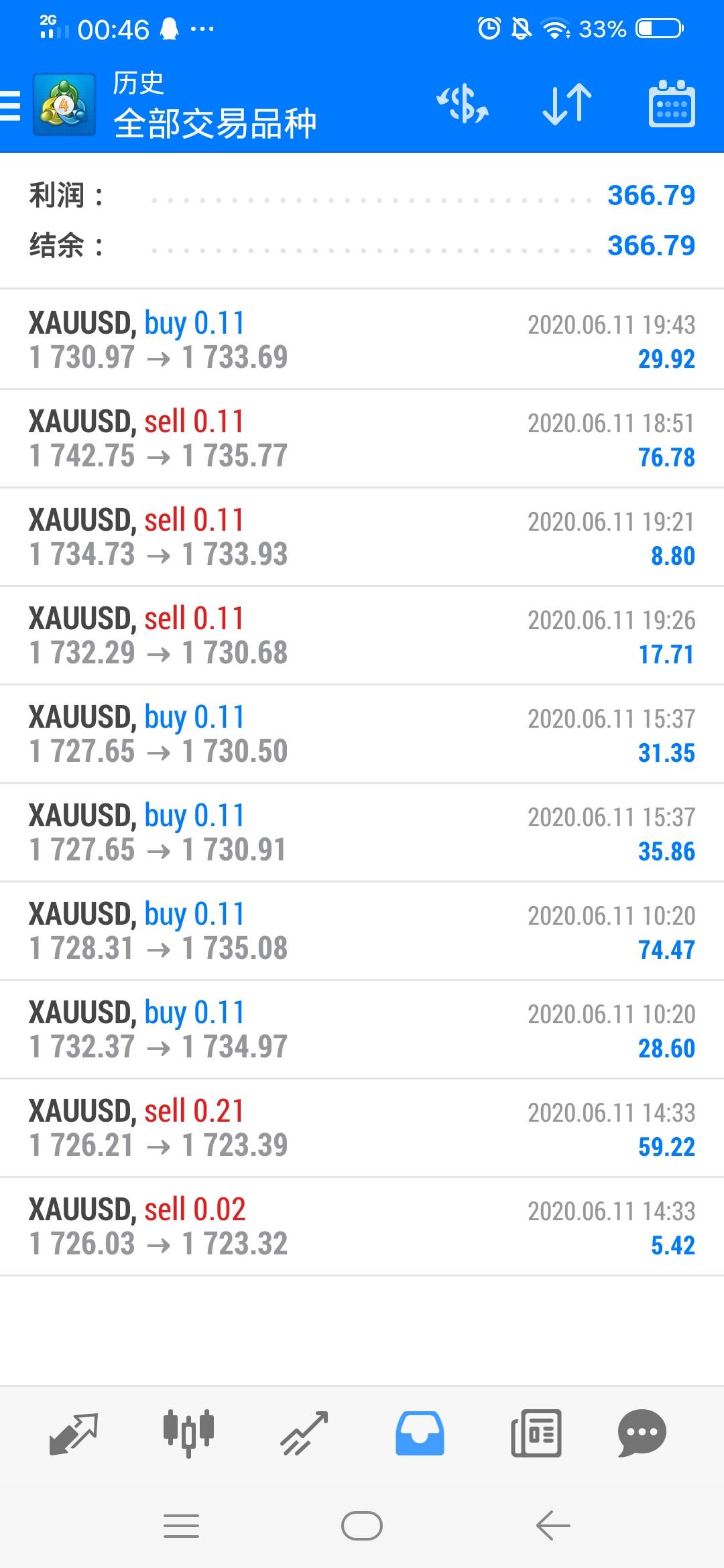#XAU/USD# 今天的黄金很好刷单呀!入了20美金直接刷到了70多美金。