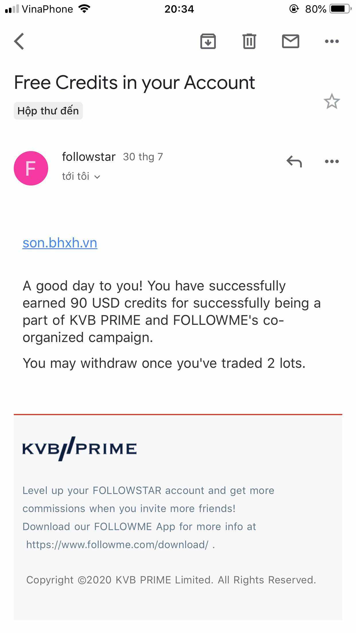 Cảm ơn Followme, tôi đã nhận đc 90$!