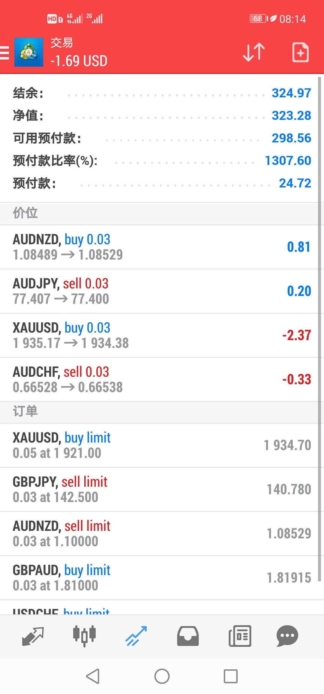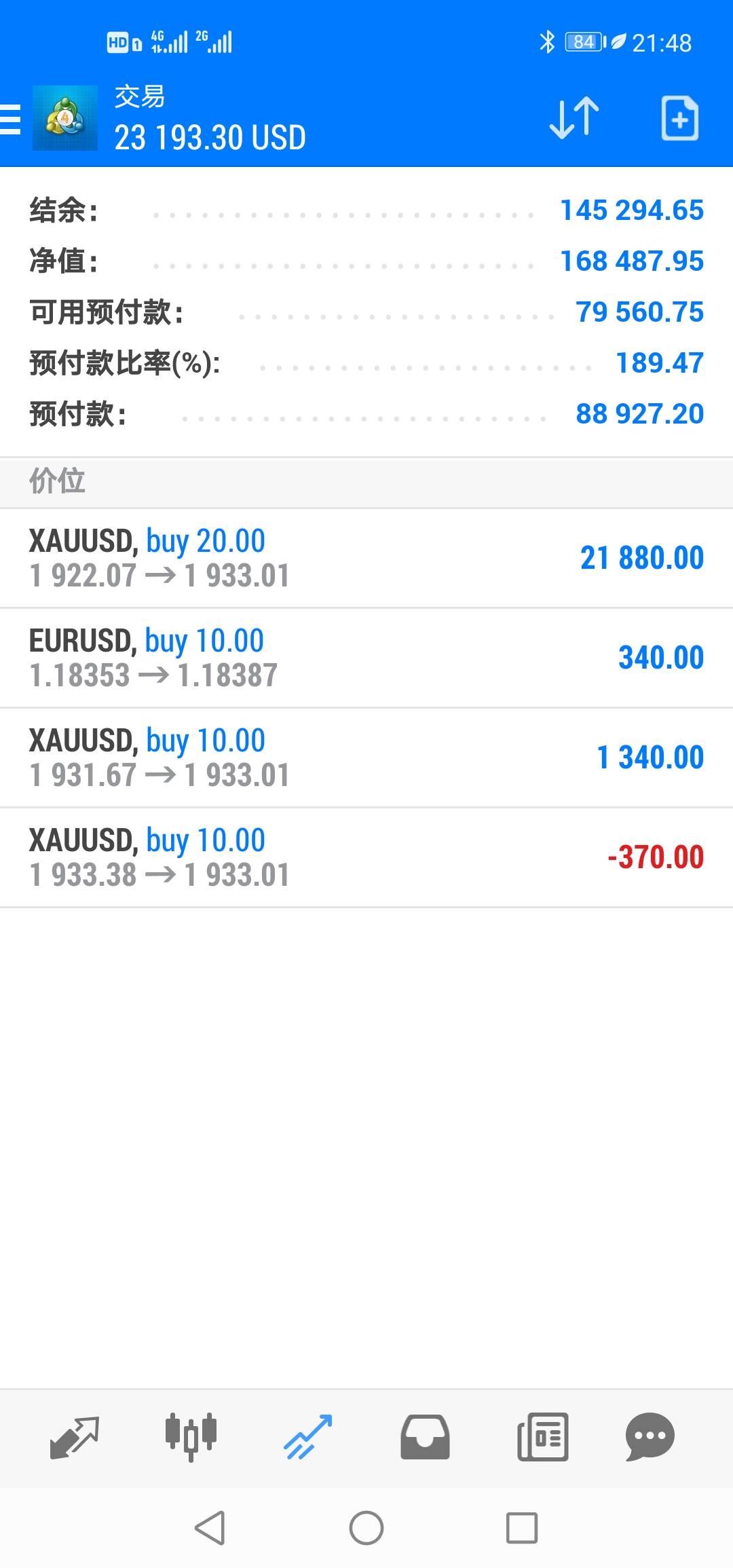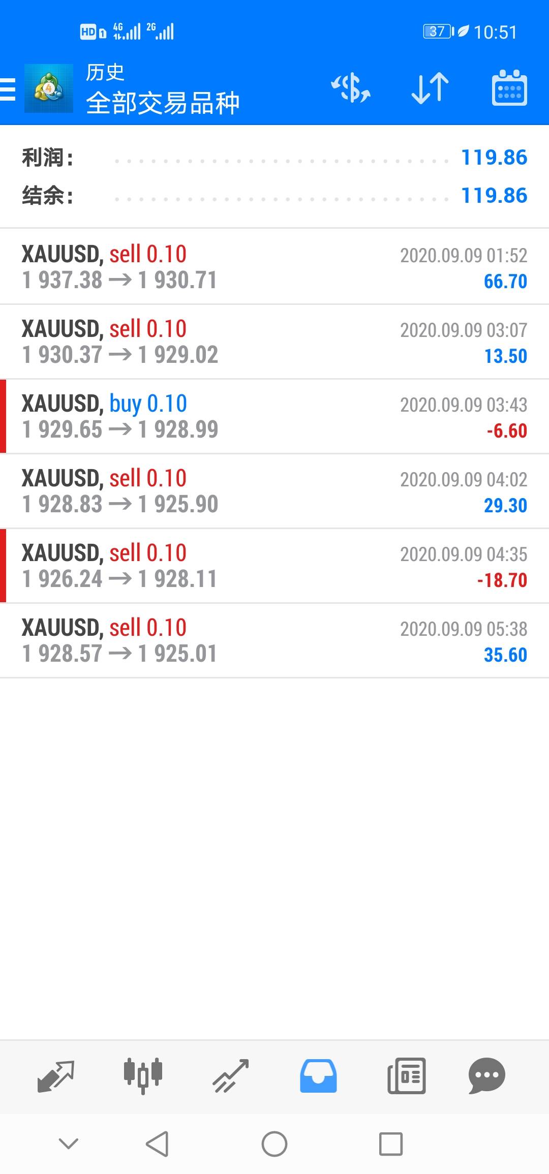 代客操盘过股票,为朋友专门刷单过外汇2年(骗人的平台刷单赚手续费)。脱离交易三年,创业、工作、投资没赚钱今年上半年努力又没好结果想了2个月了,不知道有啥能做的。目前负债30多万。投入1000Rmb(144usd)赚多少出局,好难(✪▽✪),10倍不心动的那种。干扰心态的因素太多,不停提醒自己,不能爆仓!不能爆仓!不能爆仓……发布动态,目地每天提醒自己,避免一个人。每一单都有止损设定,不能爆仓,不能爆仓!今天挂单的全部成交了,方向反了,全部止损