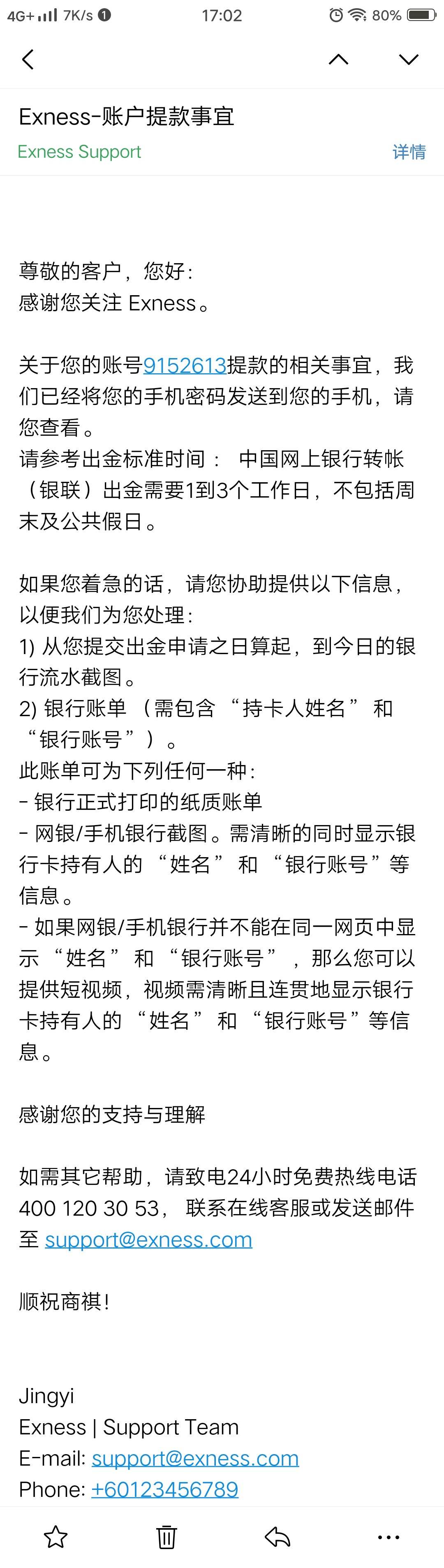 EXNESS牛逼,威武,取款没到账需要我银行流水证明,你怎么不提供转账成功的证据给我呢?上次也是让我上传银行流水打电话官方客服就说催促,14号下午一点钟出金的,现在还没到账,牛逼平台,为你点赞#Exness##USD/CHF##USD/JPY##EUR/USD##脱欧谈判僵局会打破吗##近2000人报名第7届交易大赛##2020年美国大选#