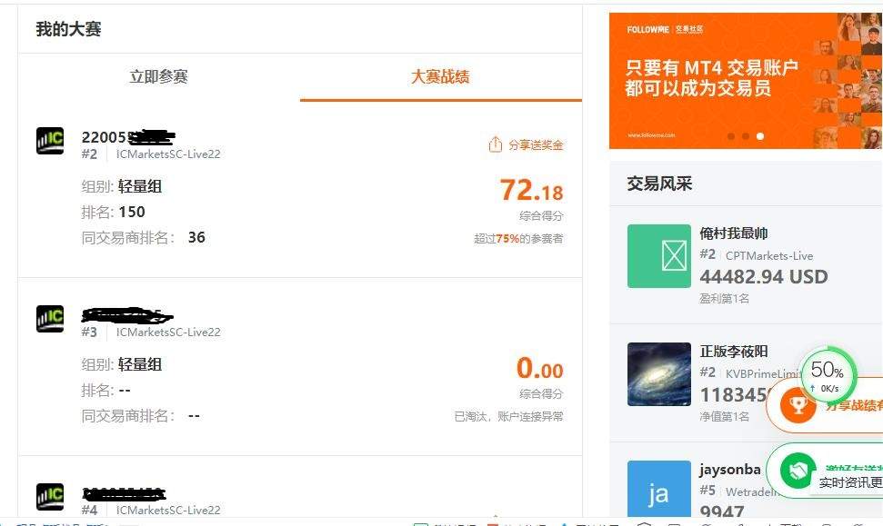 我的信号账户全部开放免费订阅一个月,让订阅者真实验证跟单的是否盈利。订阅者请按比例手数跟单,否则会亏损。不能接受浮亏和回撤的,请不要订阅。我的账户(https://www.followme.com/u/357...)参赛,在轻量组1250个账户中,排名150;同交易商排名36。